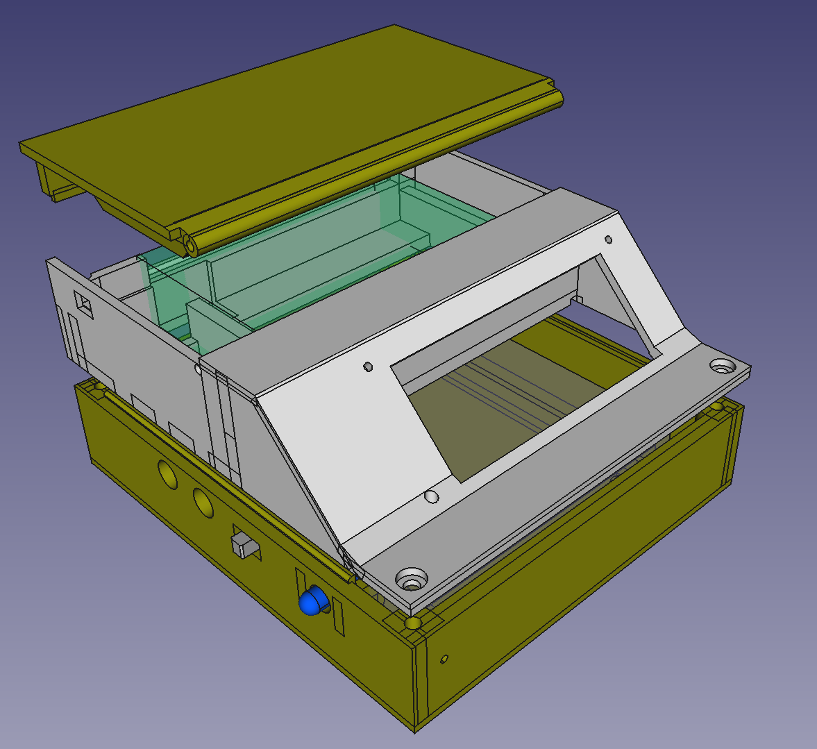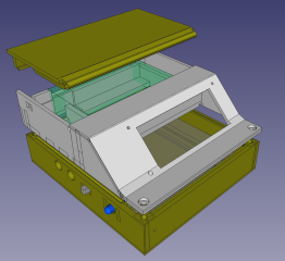 | Figure 7: FreeCAD design of an enclosure for the electronics. Click on the thumbnail for a full-size image. |