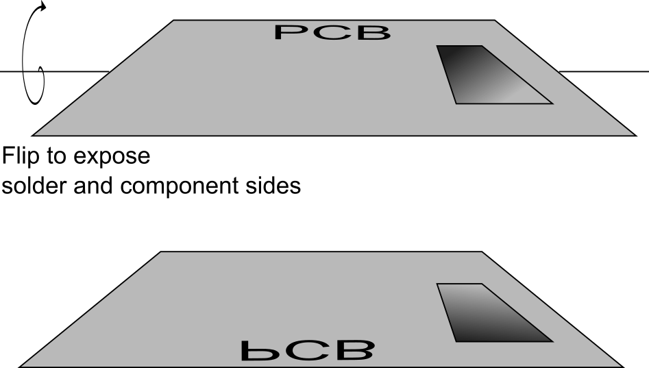 | Figure 6: Illustration of flipping the PCB between exposure of the solder side and the component side. |